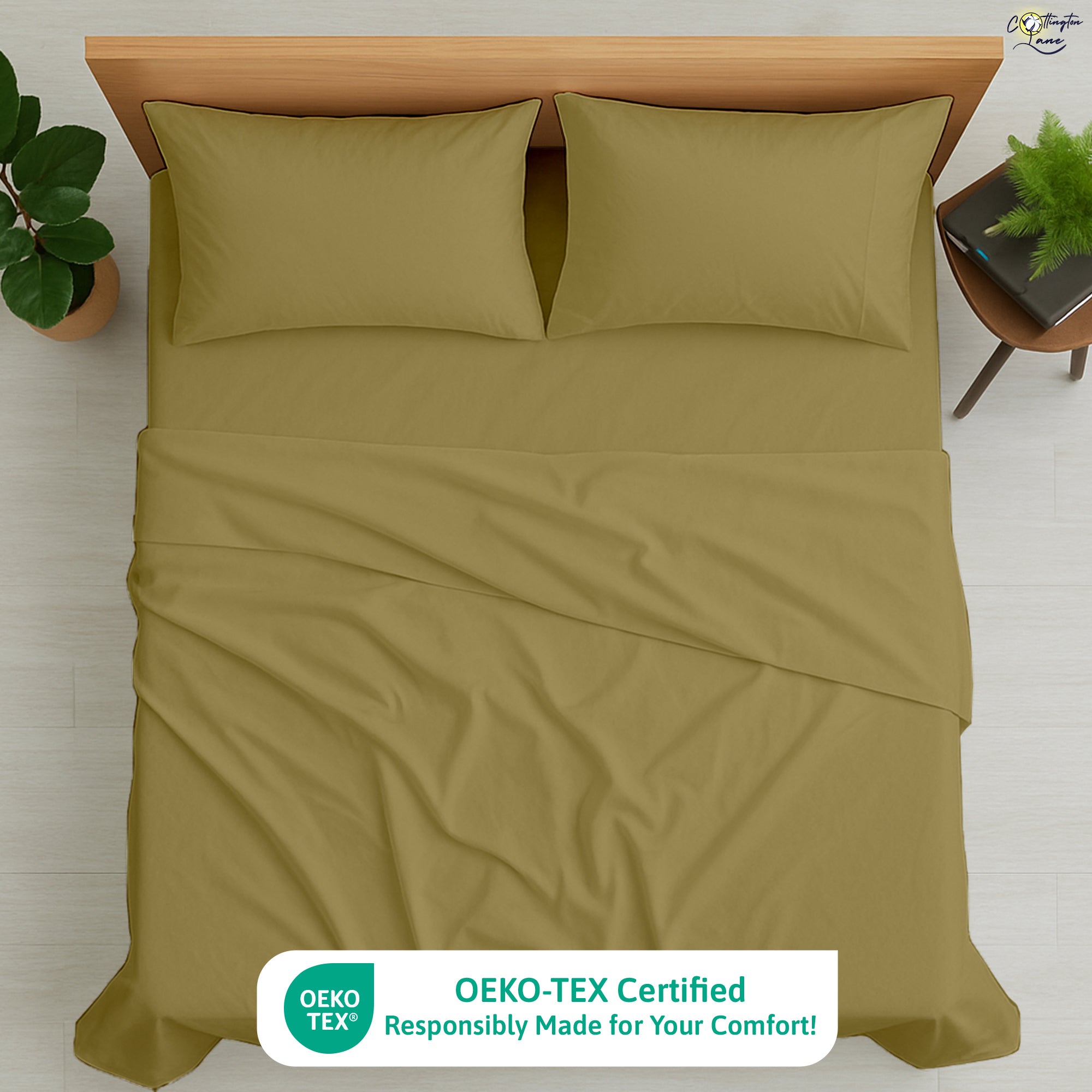 | Experience the timeless comfort of our premium 100% cotton 4-piece sheet set. Designed for softness, breathability, and everyday elegance, this set combines natural comfort with lasting durability. With a deep 10-inch pocket and a complete bedding ensemble, it delivers the perfect balance of function and style for a restful night’s sleep. Product Highlights • Pure Cotton Comfort – Made from 100% natural cotton, offering a soft, breathable, and skin-friendly feel that enhances your sleeping experience. • Cooling & Airy Design – Promotes natural airflow and moisture absorption, keeping you cool and refreshed through every season. • Secure Fitted Sheet with Deep Pocket – Features an elasticized fitted sheet with a 10-inch pocket, ensuring a snug fit that stays in place all night. • Complete 4-Piece Set – Includes one fitted sheet, one flat sheet, and two matching pillow covers, creating a polished, hotel-style look for your bed. • Durable & Easy Care – Fade-resistant cotton is designed to retain its softness and strength even after multiple washes. Product Details • Set Includes: 1 Fitted Sheet + 1 Flat Sheet + 2 Pillow Covers • Deep Pocket: Fits mattresses up to 10 inches • Material: 100% Cotton • Finish: Soft, Breathable & Long-Lasting Refresh your bedroom with this classic cotton sheet set—where natural comfort meets effortless elegance. |